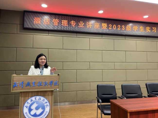 宣讲会伊始,酒店管理专业教研室主任陈巧林带来了精彩的专业讲座。陈巧林凭借深厚的教学经验与敏锐的行业洞察力,从行业发展趋势、前沿理念切入,为员工们勾勒出清晰的酒店管理行业发展蓝图。她点明:“随着酒店业市场升温,行业对高素质人才需求攀升,这既为员工们开辟了广阔职业空间,也对其专业素养与综合能力提出了更高要求。”